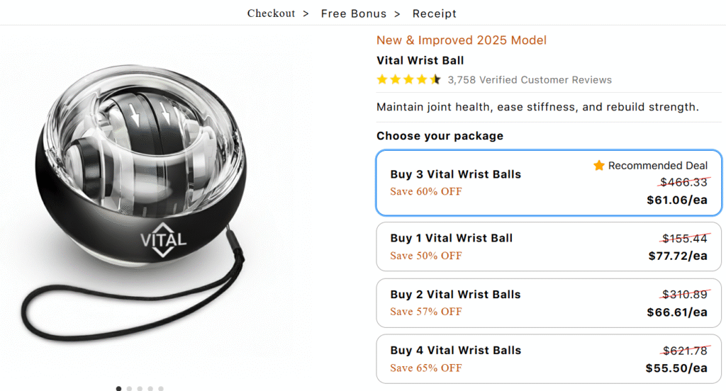 ❌ Exclusively Online: The Vital Wrist Ball is sold only on the official website. This model helps guarantee authenticity but means customers cannot inspect or feel the device in person before purchasing.