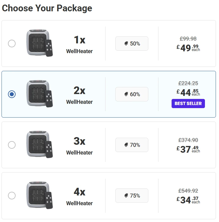 To ensure you receive the authentic, high-efficiency WellHeater and avoid counterfeit risks, it is exclusively available for purchase through the official website. This direct-to-consumer approach allows the manufacturer to offer special promotions and significant discounts, especially when purchasing multiple units to heat different rooms.
